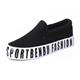 韩版春夏黑白字母休闲女鞋平底懒人一脚蹬板鞋帆布鞋松糕厚底鞋潮