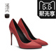 烫社交女鞋时尚红色羊猄羊反绒尖头高跟鞋细跟中跟浅口单鞋女婚鞋