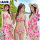 乐浪情侣装泳衣女 小胸聚拢钢托三件套比基尼温泉沙滩裙沙滩裤男