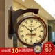 欧式实木双面挂钟创意时尚大号客厅时钟两面静音田园简约石英钟表