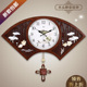 TQJ新中式实木客厅挂钟中国风贝壳石英钟表欧式时钟卧室静音挂表