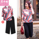 乐卡索妈妈装夏装套装中袖衬衫裤子中老年40岁时尚两件套中年女装