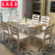 实木餐桌椅组合6人欧式餐桌白色伸缩折叠餐桌可拉伸桌子实木圆桌