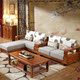 实木沙发组合 中式沙发 实木转角贵妃布艺沙发L型组合