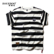 2017潮牌夏季新款 海魂条纹横条开叉纯棉圆领宽松短袖T恤男士半袖