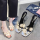 大东同款高跟凉鞋女粗跟女士凉拖鞋女夏季中跟时尚韩版水钻一字拖