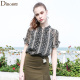 迪图波西米亚条纹碎花短袖雪纺衫蝴蝶结荷叶边系带立领雪纺上衣女