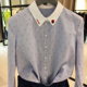 职业阿玛施特长袖衬衫大码女装2017春秋钉珠修身百搭衬衣女221975
