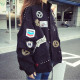 原宿BF风衣女2017新款韩版个性铆钉贴布宽松中长款长袖大衣外套潮