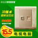 弗朗斯基3D亮金钢架墙壁开关插座面板 网线插座 电脑插座面板