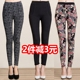 春秋薄款中老年女装花裤中年女裤妈妈外穿打底裤大码小脚休闲长裤