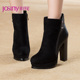 卓诗尼2015冬季新款短靴欧美超高跟粗跟女靴子时尚韩版裸及踝靴
