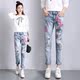 绣花破洞牛仔裤女夏七分裤刺绣宽松显瘦哈伦小脚裤韩版休闲直筒裤