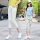 棉麻七分裤女夏松紧腰显瘦印花哈伦裤宽松弹力休闲裤薄款马裤中裤