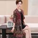 春夏装新款两件套复古印花雪纺衫中长款中年女装时尚套装大码外套