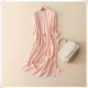 绾桑2017夏新款女立领九分袖系带真丝连衣裙重磅桑蚕丝中长裙大码