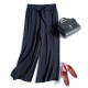 2017新品春夏真丝长裤100桑蚕丝加长系带大码休闲裤阔腿裤裙裤女
