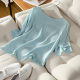 真丝T恤女短袖新款夏季简约纯色一字领宽松大码上衣桑蚕丝打底衫