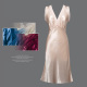 真丝睡裙无袖背心裙女夏家居服内衣双V领性感蕾丝拼接桑蚕丝睡衣