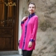 VOA 大红紫色重磅真丝连衣裙女 西装领五分袖宽腰带ol中裙A0275