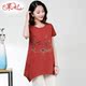 夏装中年加大码纯棉短袖T恤女蕾丝拼接宽松显瘦妈妈装中长款体恤