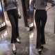 2017秋款喇叭裤复古外穿显瘦百搭高腰休闲裤9分裤长裤雷丝拼接