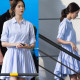 韩国少女时代林允儿同款连衣裙浅蓝色短袖衬衫式大摆中裙