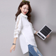 春夏韩版新款衬衫女纯棉中长款衬衣POLO领宽松镂空长袖大码潮