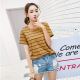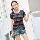 2017夏季女装新款圆领彩色条纹短袖女士t恤宽松百搭上衣