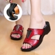 真皮妈妈鞋拖鞋女外穿坡跟平底中老年凉拖鞋舒适软底中年女一字拖