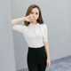 2017春装新款女装气质修身小高领镂空系带蝴蝶结套头针织衫短袖潮