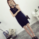 秋装新款女装韩版珍珠挂链无袖连衣裙修身前短后长纯色亮丝背心裙