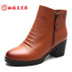 蜘蛛王女鞋秋冬棉鞋女真皮妈妈鞋子真皮中老年羊毛短靴子保暖鞋子
