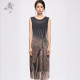 鸾翼 原创渐变绣花真丝连衣裙女夏 桑蚕丝2017夏装新款背心长裙