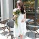 泰古2016夏新品亚麻高端立体刺绣系带宽松甜美收腰白色棉麻连衣裙