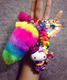 甜美粉嫩童话风HELLO KITTY大灰狼兔毛球铃铛钥匙扣 包挂两件包邮