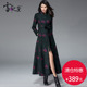 雪妃黛2016秋冬新款韩版复古花色收腰羊毛长款呢子大衣女超长外套