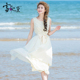 韩版无袖雪纺显瘦连衣裙海边度假沙滩裙大摆波西米亚甜美长裙夏