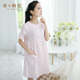 家时光 纯棉纱布睡衣睡裙女士秋季薄款休闲中裙韩版七分袖家居服