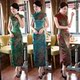 旗袍春款2017新款气质淑女修身祺袍长裙中长款端庄大气旗袍连衣裙