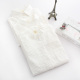 大码文艺女装棉麻短袖女上衣宽松韩版V领刺绣系带复古亚麻衬衣夏