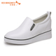 红蜻蜓女鞋2017春新款真皮休闲内增高女鞋厚底乐福小白鞋坡跟单鞋