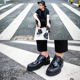 JINIWU吾倪季大齿雕花拼盾牌面欧美白搭纯黑潮手工套脚厚底男鞋