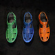 JINIWU吾倪季重拳设计铆钉全身手涂牛皮蓝色橙色绿色包头罗马凉鞋