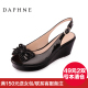 Daphne/达芙妮 夏新款时尚甜美串珠鱼嘴蝴蝶结坡跟女凉鞋