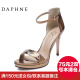 Daphne/达芙妮女鞋 夏季新款细跟超高跟防水台一字扣女凉鞋清仓
