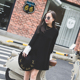 16冬马思纯同款连衣裙女 女神款小黑裙圆领 针织长袖连衣裙潮