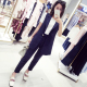 gagazhang春款宽松休闲两件套女OL时尚竖条纹西装长裤