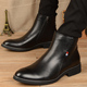 短筒皮靴男韩版潮流英伦尖头内增高休闲男靴子拉链高帮男鞋马丁靴