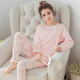 春秋季针织棉女士长袖清新圆领开衫睡衣家居服套装